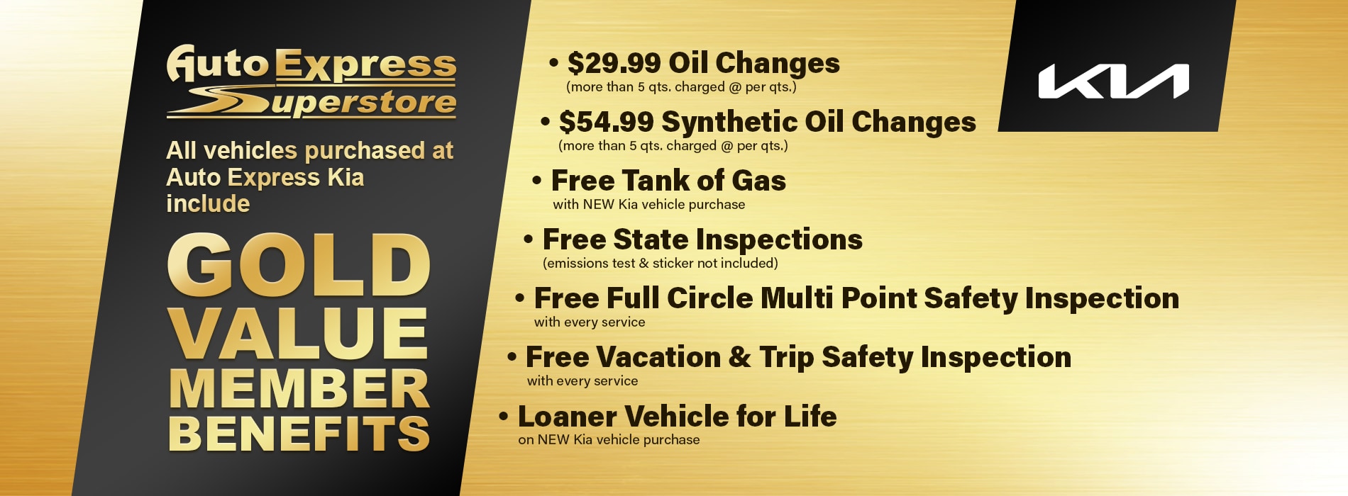 $24.99 oil change with your Auto Express Kia Gold Rewards Card!!!
